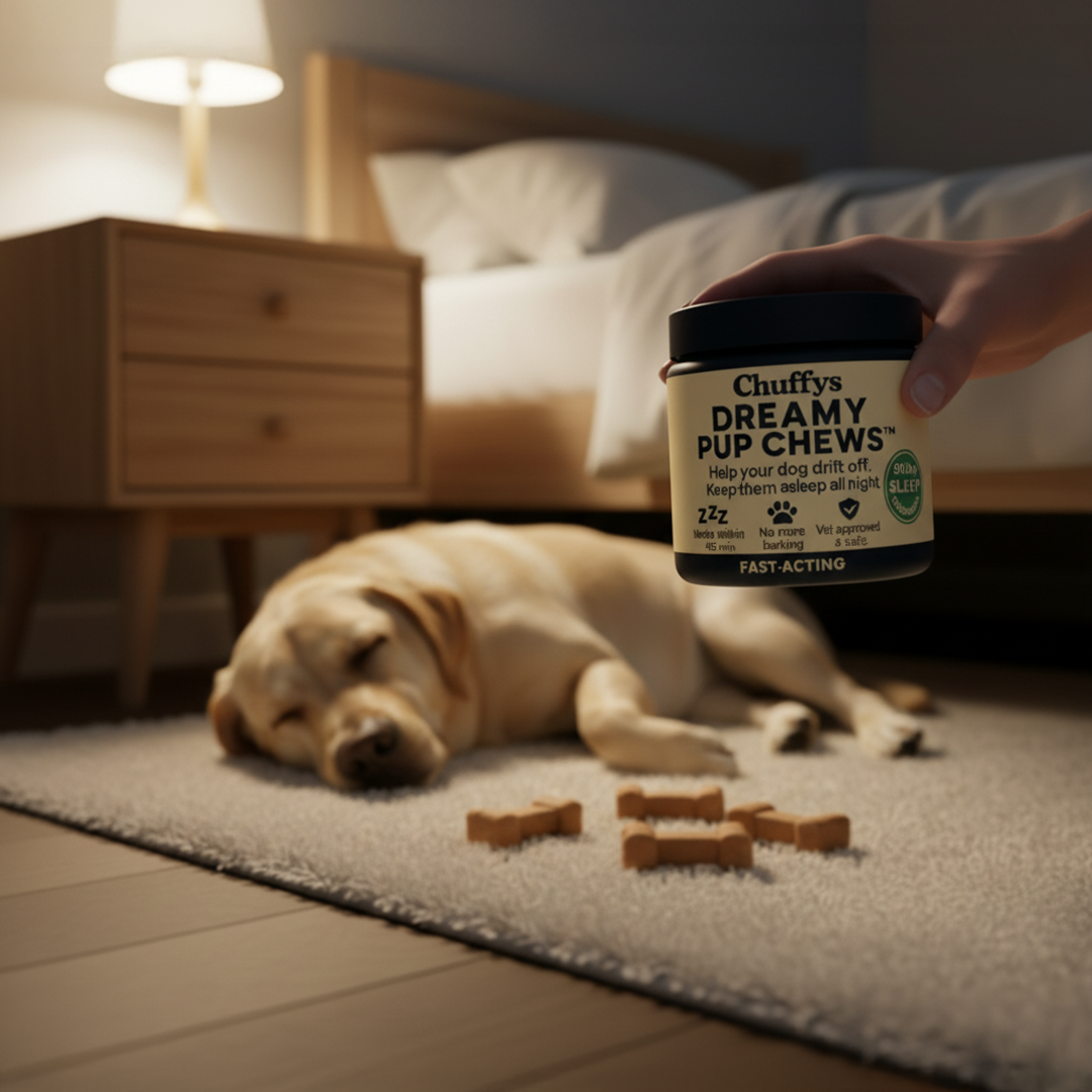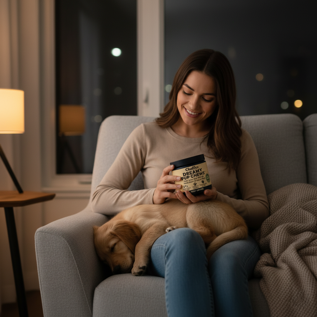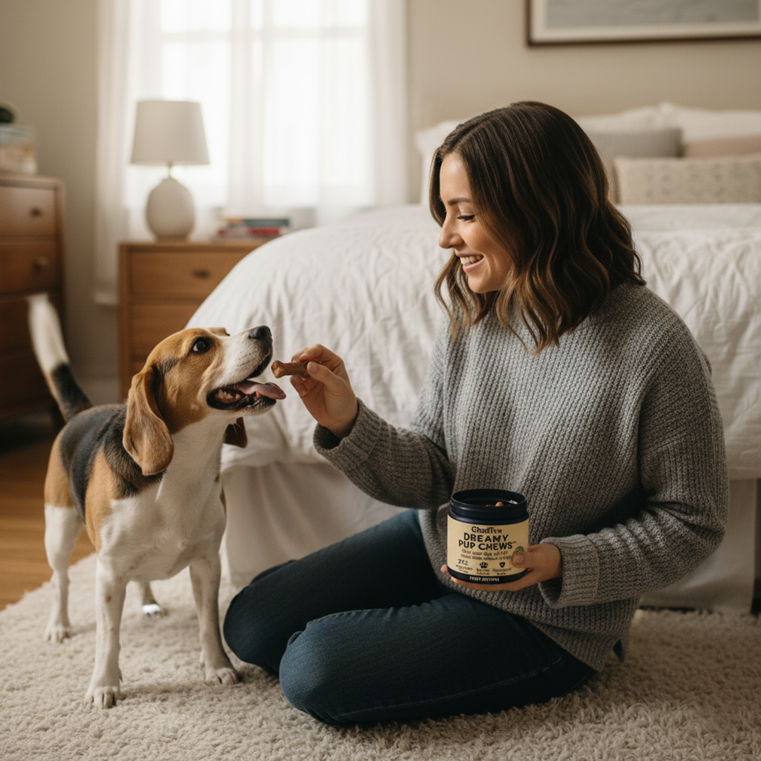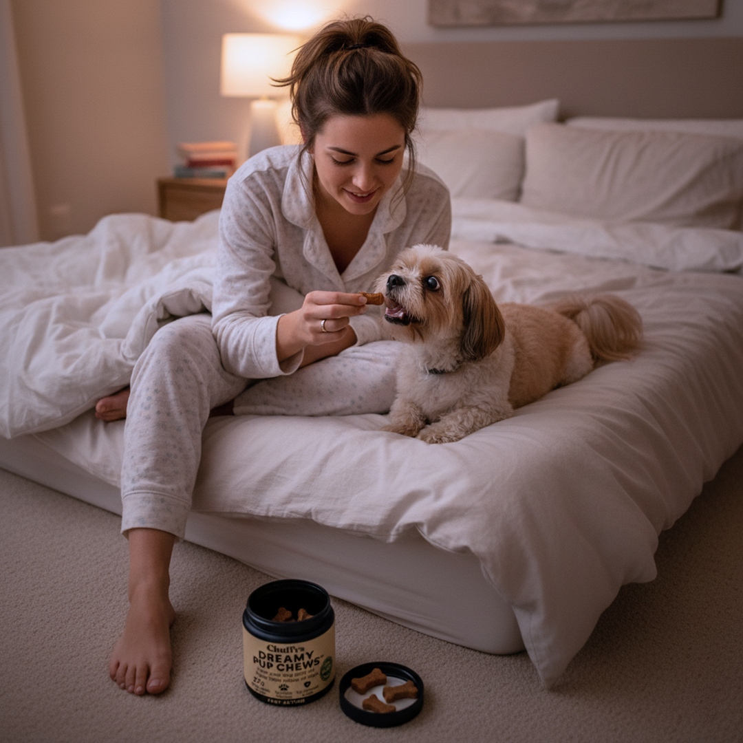 - Dreamy Pup Chews: Regulates sleep cycles naturally (safe, fast, affordable) You get the effectiveness of medication without the risks, and faster results than training alone.