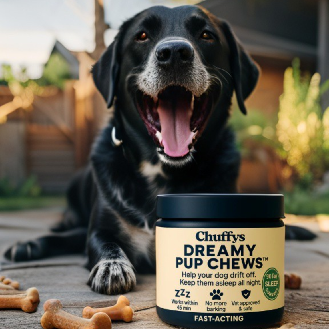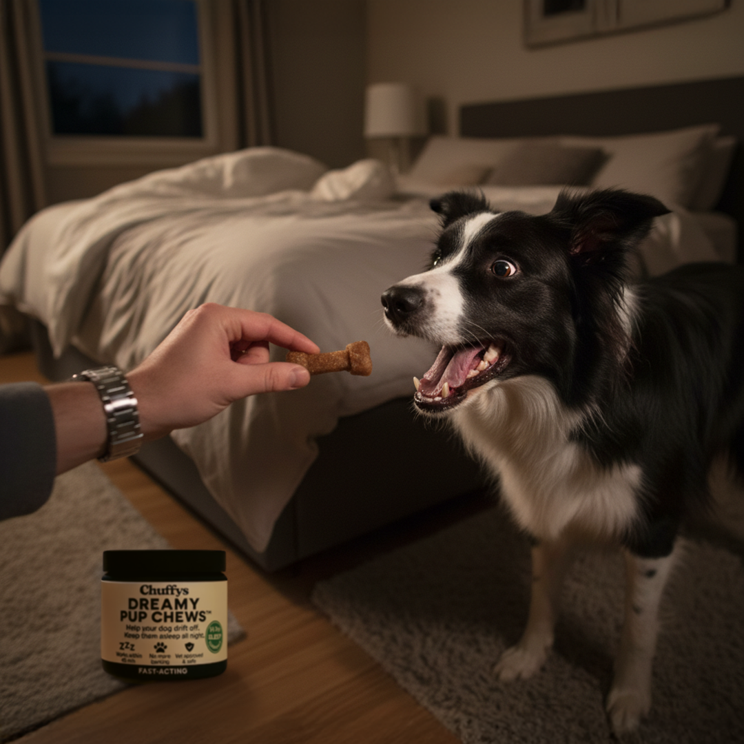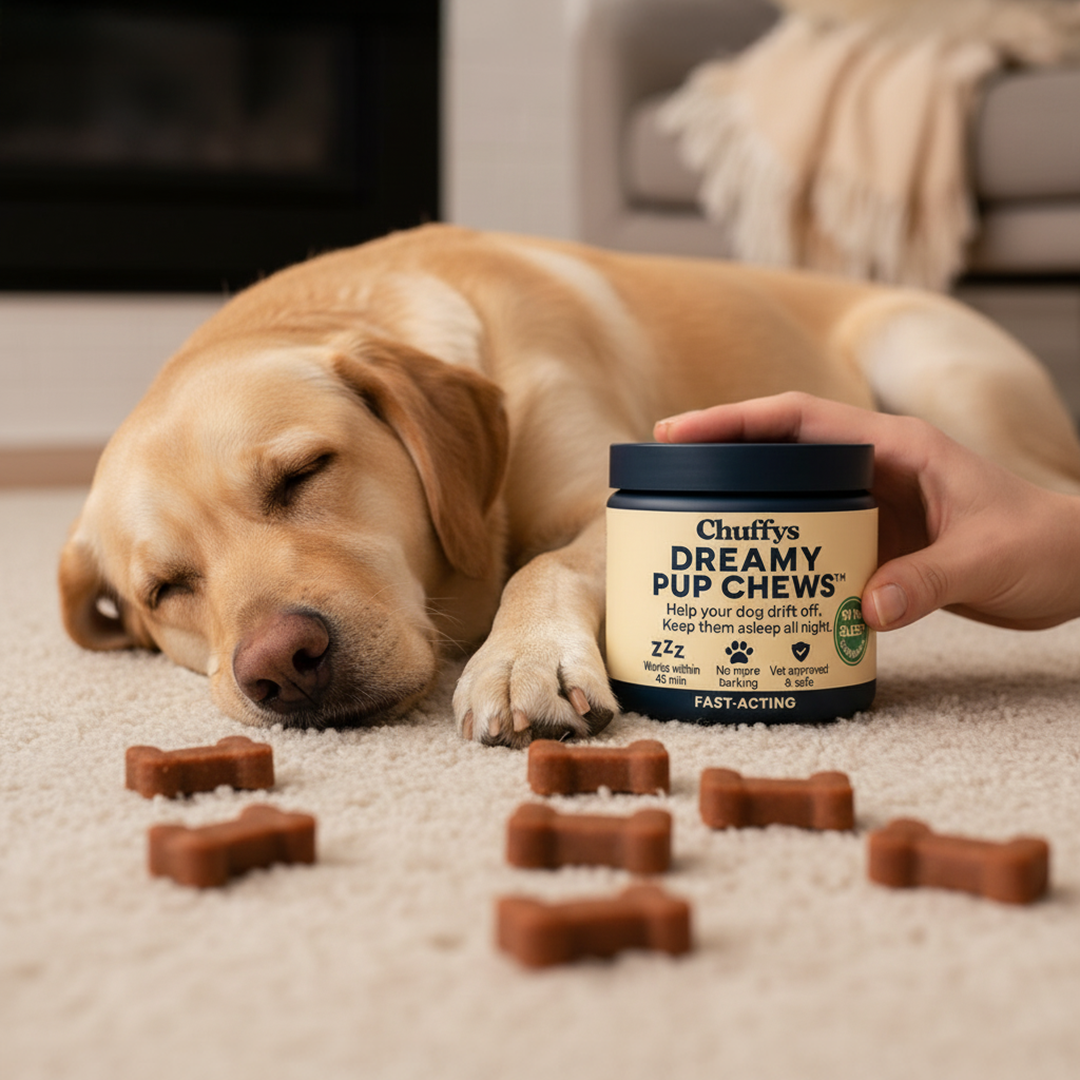 - Dreamy Pup Chews: Regulates sleep cycles naturally (safe, fast, affordable) You get the effectiveness of medication without the risks, and faster results than training alone.