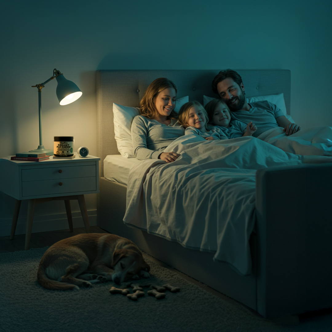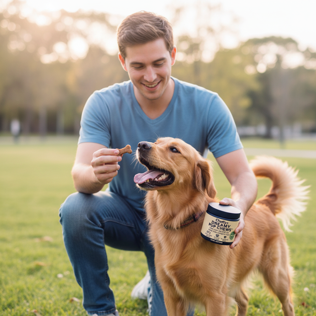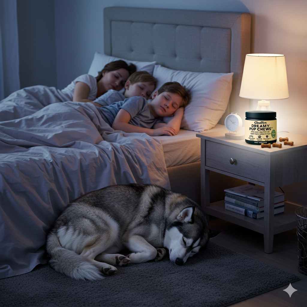 Unlike sleep medications, Dreamy Pup Chews regulate your dog's natural sleep cycles without sedation, side effects, or dependency. And unlike behavior training—which can take months and cost thousands—our formula works within days by addressing the root cause: disrupted circadian rhythms.